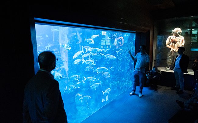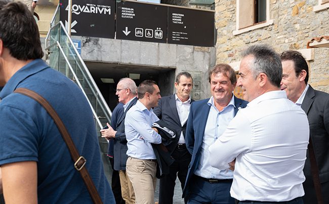 Seguidamente, los asistentes disfrutaron de un recorrido guiado por el Aquarium de San Sebastián que, con más de 100 años de historia, alberga además de los acuarios, un museo oceanográfico con valiosos elementos patrimoniales que a través de los diferentes ámbitos ayuda a explicar y contextualizar la rica historia marítima y marina de Euskadi y de San Sebastián, su pasado pesquero y corsario, las embarcaciones utilizadas para las grandes gestas de sus navegantes. El recinto también acoge una zona que rinde homenaje a la Sociedad de Oceanografía de Gipuzkoa, que fue una de las primeras entidades dedicadas al estudio y divulgación de contenidos oceanográficos en España.