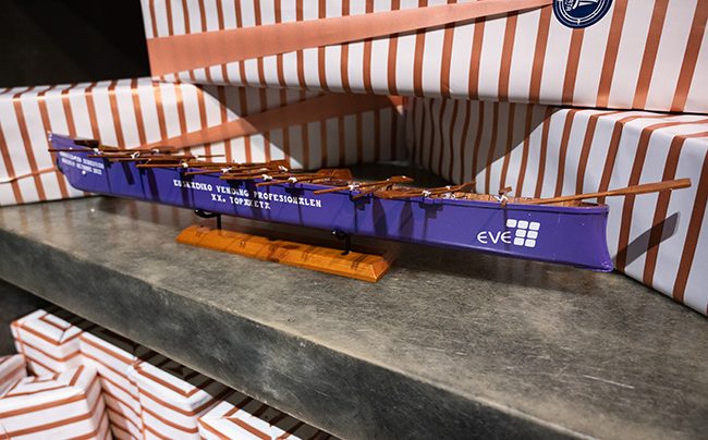 El broche final de la jornada, con un punto emotivo, lo puso el presidente de la EVE, Carlos Abad, quien habló sobre “empresas valientes”, en referencia a las relacionadas con la distribución automática. Asimismo, Abad quiso explicar el motivo de la entrega de la trainera como metáfora de que los profesionales del sector deben remar todos juntos haca los mismos objetivos.