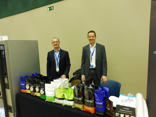 El pasado 15 de febrero la empresa Vendin participó en la exposición comercial desarrollada en el marco del XVII Encuentro Profesional de la Asociación de Vending de Euskadi (EVE), que se celebró junto a la X Jornada ‘Piensa en Vending’, organizada por Aneda (Asociación Nacional Española de Distribuidores Automáticos). La firma, conocida por la calidad, la innovación y el afán continuo de adaptar sus productos a las necesidades del mercado, dio a conocer a los asistentes su gama de bebidas instantáneas y consumibles para el vending, entre los que destaca la línea Cappuccino para máquinas de bebidas calientes, disponible en cuatro sabores: vainilla, irish (café irlandés), avellana y caramelo. “La gama Cappuccino se caracteriza por su concentración de aroma y sabor, así como por una excelente proporción que está dando muy buenos resultados en el mercado”, explica Jesús Flores, Senior Account Manager de Vendin.
