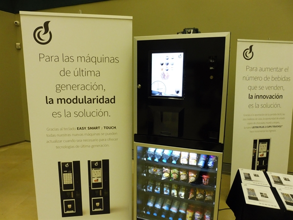 Durante su paso por el showroom celebrado el pasado 15 de febrero en San Sebastián, en el marco de la jornada organizada por la EVE y Aneda, Bianchi Vending dio conocer a los operadores de vending desplazados a la ciudad vasca LEI300, un distribuidor automático de bebidas calientes con capacidad para 300 vasos y con el estilo inconfundible de la gama LEI. La máquina se presenta combinada con ARIA S, una expendedora de espirales y con refrigeración hasta 8ºC para la venta de snacks, latas y botellas disponible en la versión slave. Con un tamaño compacto y cuatro bandejas de alta capacidad, esta máquina expendedora puede ofrecer una solución completa  para emplazamientos pequeños.