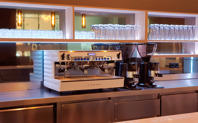 El hotel cuenta, por el momento, con cuatro cafeteras automáticas (dos ‘Bluedot 26‘ y dos ‘Armonía Soft‘) para el desayuno-buffet y las salas. Asimismo, también dispone de una tradicional ‘Bubble‘ de dos grupos con dos molinillos para la cafetería/bar/restaurante. Debido a los contenidos márgenes y precios con los que trabaja la compañía, próximamente el Hotel podrá ampliar el número de cafeteras para sus salas.